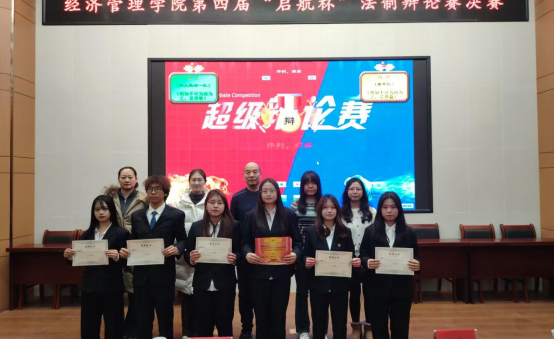 最后,主持人宣读比赛成绩,经济管理学院领导及嘉宾为获奖队伍颁奖并合影留念,为本次“启航杯”法治辩论赛画上圆满句号。