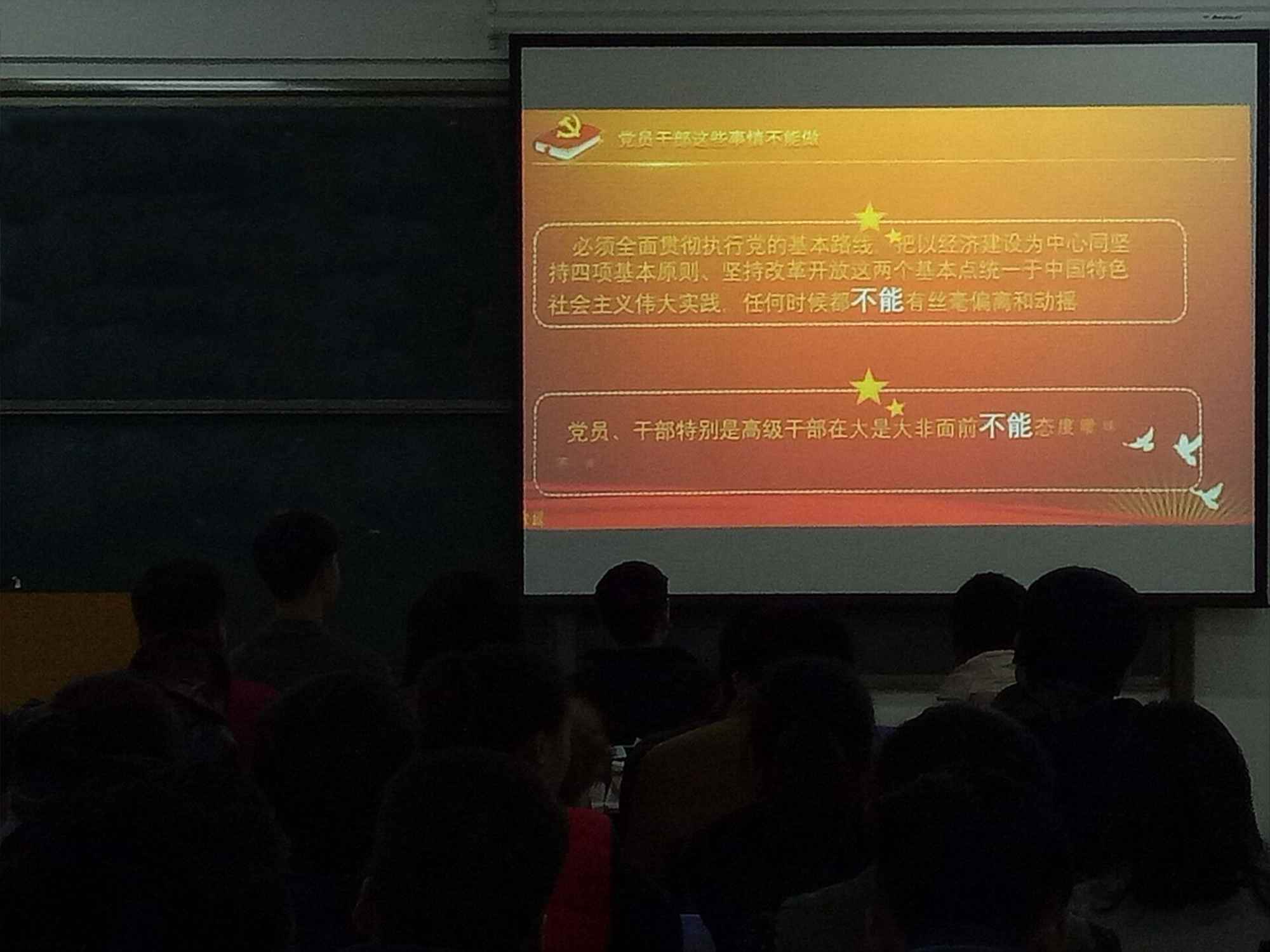 全体学生党员及积极分子学习后一致表示,要更加紧密地团结在以习近平同志为核心的党中央周围,深入学习贯彻党的十八届六中全会精神,牢固树立政治意识、大局意识、核心意识、看齐意识,坚定不移维护党中央权威和党中央集中统一领导,继续努力学习党的理论及文化知识为党和人民的事业作出贡献,朝着中华民族伟大复兴的目标奋勇前进。