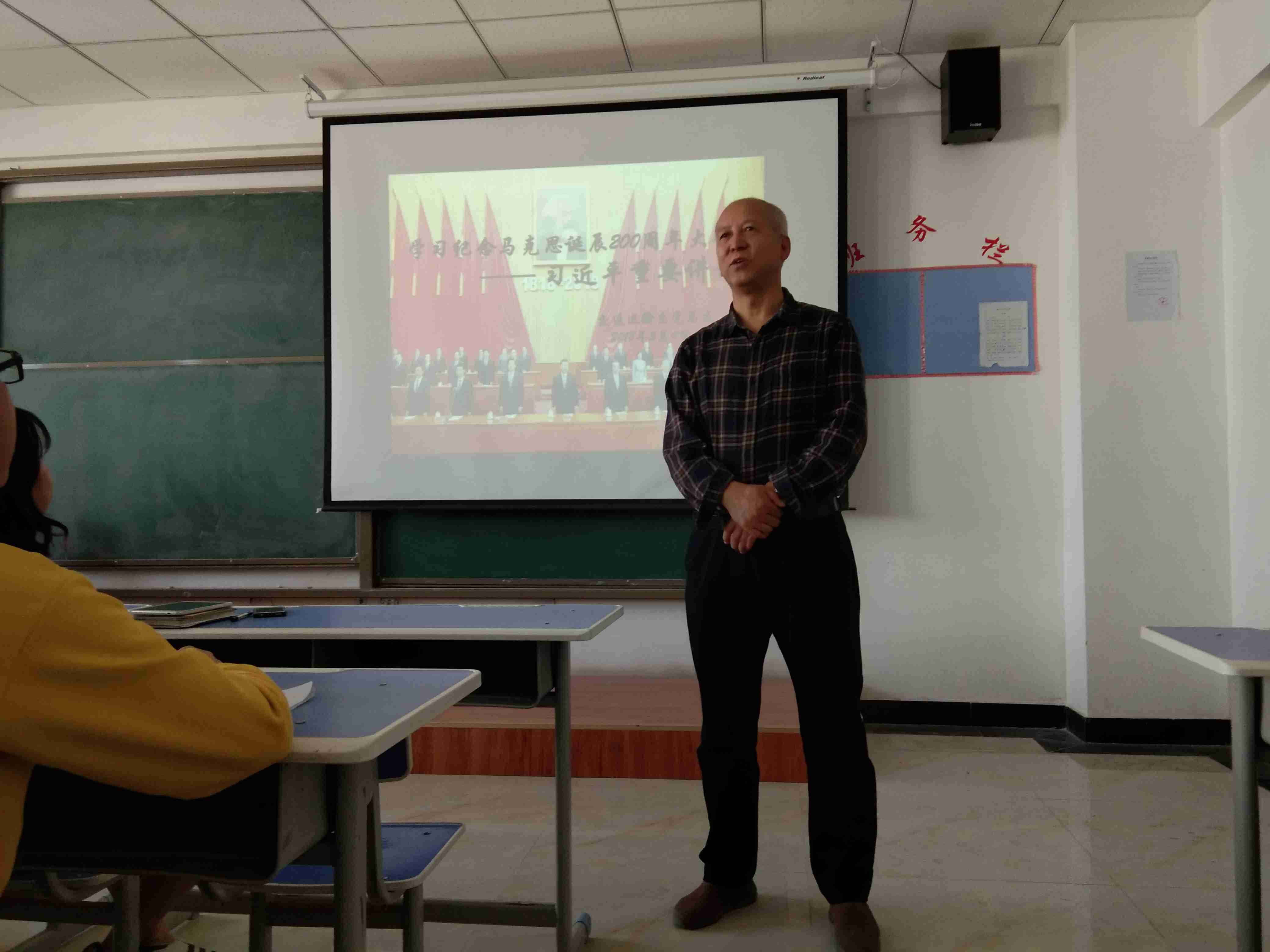 收看结束后,党总支书记谢利民同志要求全系党员和学生要认真学习习近平总书记纪念马克思诞辰200周年的重要讲话,深刻理解马克思主义是我们党的思想理论基础,以习近平总书记重要讲话精神为引领,坚持用马克思主义观察时代、解读时代、引领时代,贯彻落实习近平新时代中国特色社会主义思想。