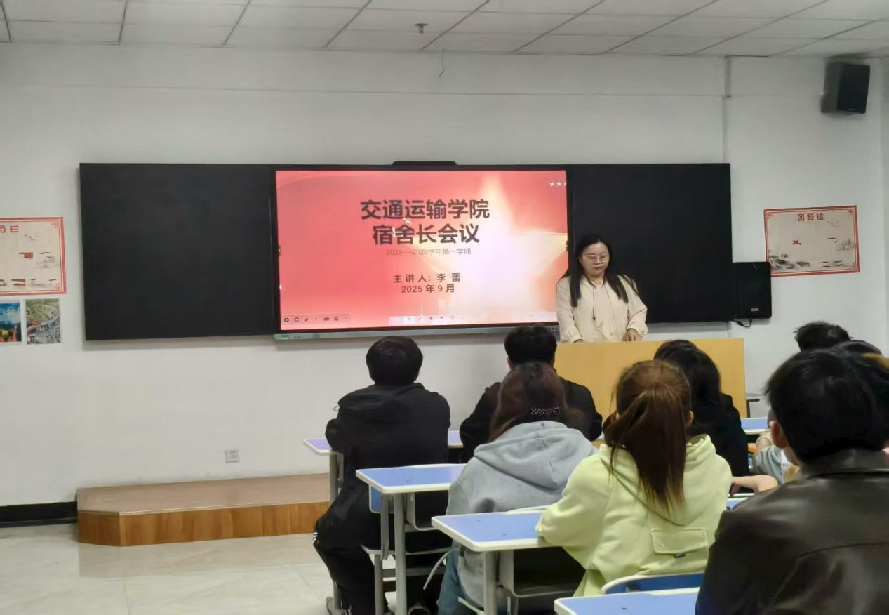 为进一步加强学生宿舍管理,明确宿舍长职责,营造安全、文明、和谐的住宿环境,培养全体宿舍成员热爱生活、积极向上的生活习惯,总结新学期宿舍管理重点任务,部署宿舍安全、卫生、纪律等工作,为新生入学后的宿舍生活奠定良好基础。交通运输学院于2025年9月24日在综合教学楼0705召开全院宿舍长会议暨安全会议。此次会议主要由交通运输学院辅导员李蕾老师主持召开,各宿舍长积极参加会议。