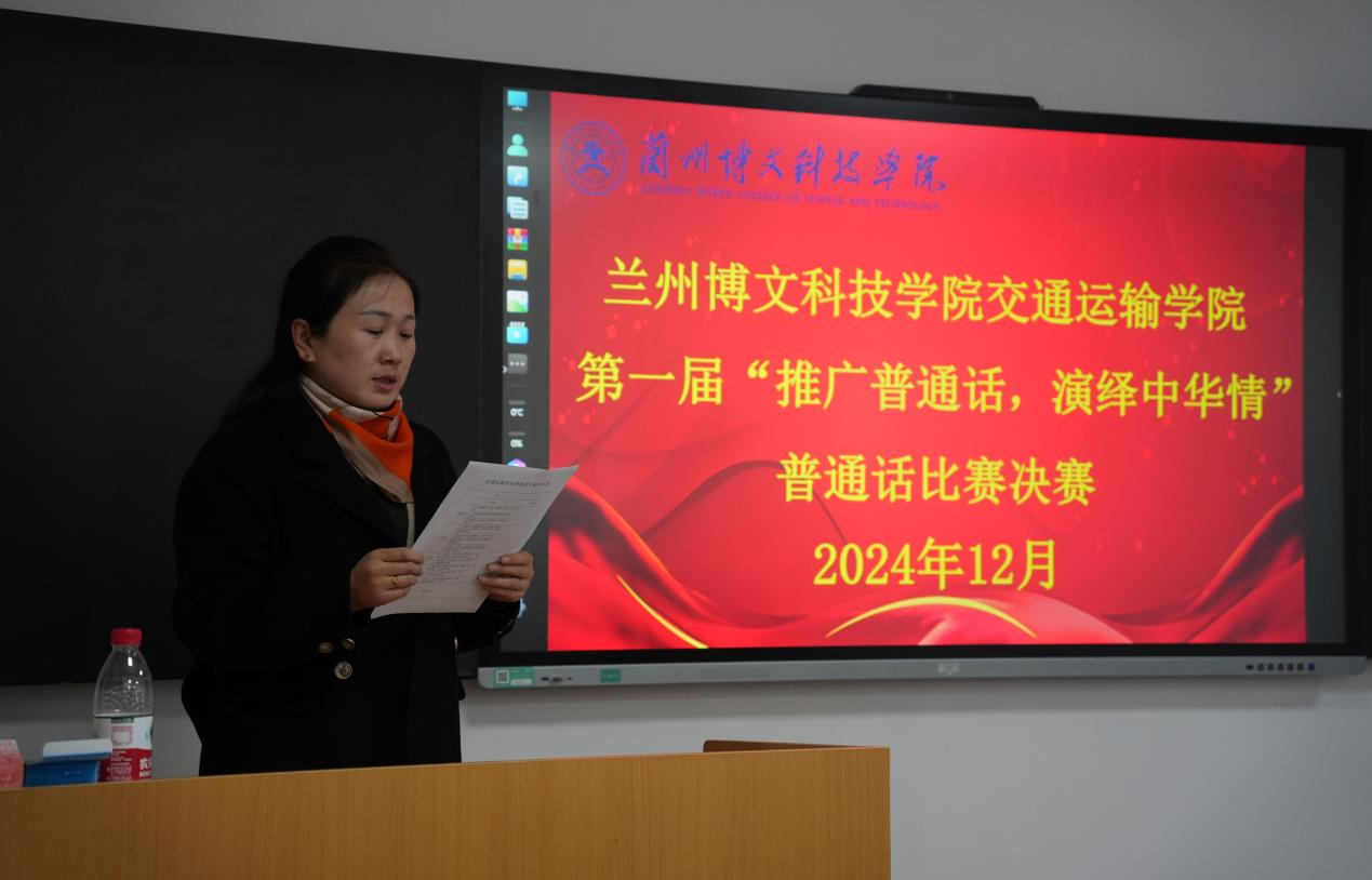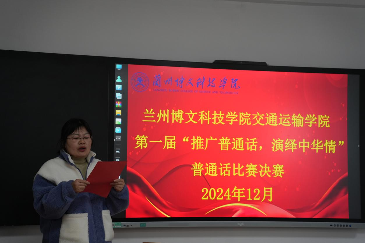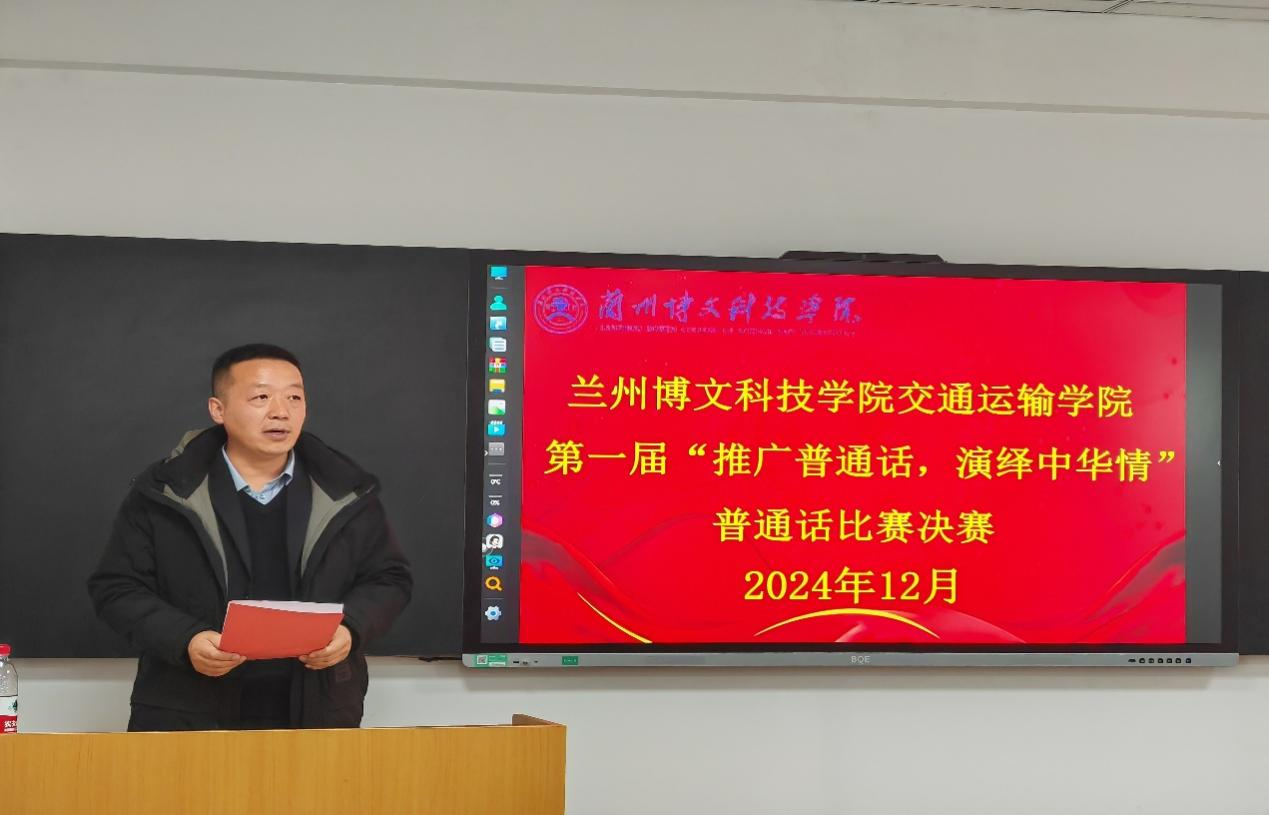 为响应国家推广普通话的号召,根据《省语委等九部门关于开展第二十七届全国推广普通话宣传周活动的通知》文件要求,为进一步提升国民语言能力、传承发展中华优秀传统文化,增强国家文化软实力,我院结合bat365正版唯一官网关于推广普通话宣传方案要求,为提高大学生的语言表达能力和文化素养,营造良好的语言环境,增进交通运输学院学生之间的交流与合作特制定此活动。经过两周的宣传、报名,有六十余学生进行报名,经过初赛激烈角逐,我院共有十同学晋级决赛2024年12月5日中午12点40分我院在北校区综合教学楼0706教室成功举办了第一届“推广普通话,演绎中华情”普通话比赛决赛