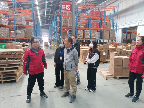 在京东物流仓储区,参观了商品的分、拣、运、监全环节的各个仓储,各仓储负责人详细介绍了各个环节运行的原理和流程。