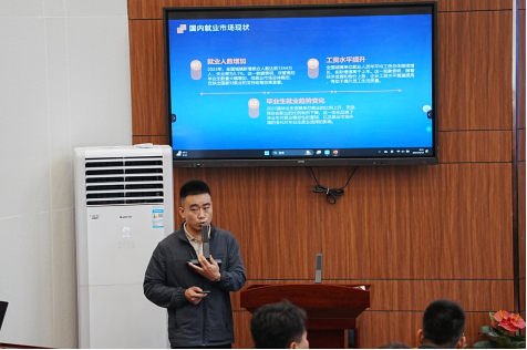 交通运输学院教学管理副院长王俊鹏为2025届毕业生介绍了就业与学业之间的联系,详细地说明了学业、就业工作的程序性问题;并介绍了学院针对毕业生升学就业提出的一系列举措,为毕业生升学就业指明方向。