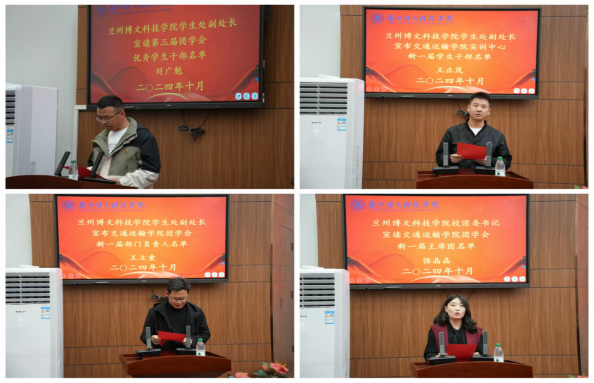 随后,由交通运输学院院长、校学生处副处长刘广魁宣读我院第三届学生组织优秀干部名单,交通运输学院院党委书记教学管理副院长王俊鹏、校团委书记强晶晶、校学生处副处长王立童、王正茂宣读我院第四届学生干部名单。随后,第四届各学生组织的新任学生干部做就职报告,他们回顾过去一年在学生组织的工作经历,从组织各种活动、学院文化建设、社会实践等多个方面进行了详细的阐述。他们的报告内容丰富、数据详实,充分展现了我院学生组织在服务同学、推动学院发展方面的积极作用。同时各位学生干部也指出了在学生工作中要加强的方面,并提出了许多宝贵的建议。