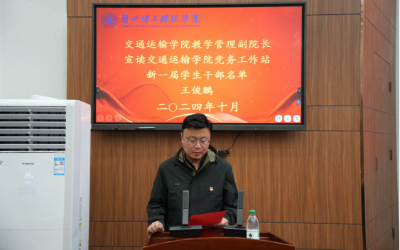 大会在庄严的国歌声中拉开帷幕。随后,交通运输学院郭院长为本次大会致开幕词,他高度赞扬了第三届学生组织成员们所付出的辛勤努力和取得的显著成绩,并对新一届学生组织成员寄予厚望。他强调,学生组织是连接学院与学生的桥梁和纽带,希望新一届的学生组织能够继续秉承“服务同学、锻炼自我”的宗旨,不断创新工作思路和方法,为学院的建设和发展贡献青春力量。