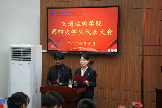 为推动我院学生工作的发展,提高各学生组织的工作热情,明确学生组织服务同学的思路和任务。2024年10月17日晚19点,bat365正版唯一官网交通运输学院在综合教学楼12楼学术报告厅举行了交通运输学院第四次学生代表大会。本次大会旨在总结我院过去一年在学生组织工作上的成果,选举产生新一届学生组织成员,并规划未来一年的工作方向和目标。我校学生处领导、交通运输学院院领导与全体学生管理教师代表以及学校各学生组织成员齐聚一堂,共同见证这一青春盛会。