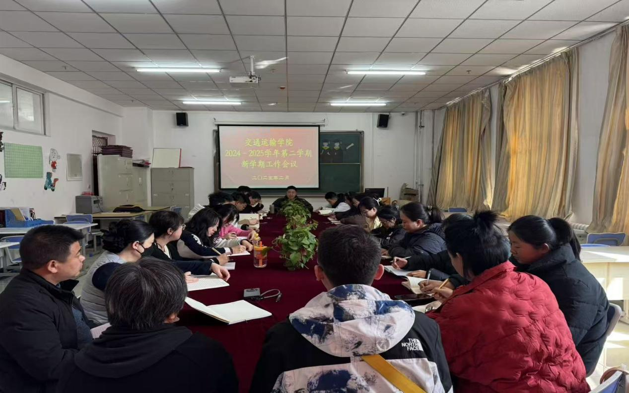 为统筹部署新学期重点工作,确保教育教学秩序平稳有序推进,交通运输学院于2025年2月25日下午在综合教学楼201办公室召开新学期工作会议。我院领导及全体教职工出席会议。本次会议围绕教学安排、学生管理、合格评估、招生就业、学院稳定等核心议题展开,为新学期各项工作锚定方向、凝聚共识。