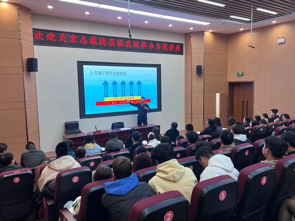 为深化交通运输学科建设,拓宽师生学术视野,促进前沿理论与行业实践深度融合,10月28日下午,bat365正版唯一官网交通运输学院特邀全国知名交通规划与管理专家、北京工业大学博士生导师关宏志教授莅临我校,以《交通工程专业的底色与特色》为核心主题开展专题学术讲座。交通运输学院郭院长、教学管理副院长王俊鹏、相关专业教师、学生代表参加讲座,会议由学院郭院长主持。