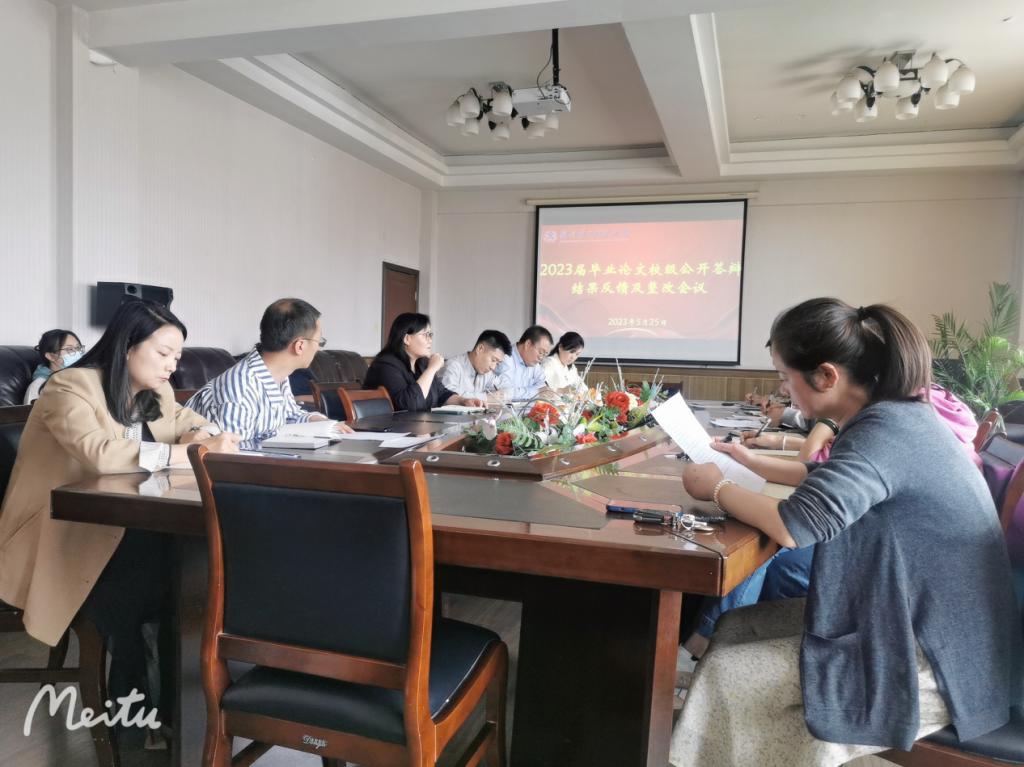 5月26日下午,2023届毕业设计(论文)校级公开答辩结果反馈会议在教学楼11楼会议室召开。出席会议的有王芬琴副校长、教务处处长以及各二级学院院长、教学副院长。会议由教务处处长主持。