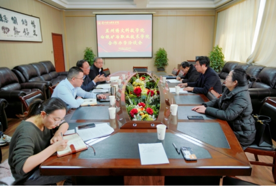 11月24日,我校与白银矿冶职业技术学院(以下简称白银矿冶学院)在11楼会议室举行了合作办学洽谈会。白银矿冶学院副院长李保华、党政办主任郭维峰和人事处处长魏春霞,校长陈彪、副校长燕宏、教务处、人事处和校办等领导出席。会议由陈彪校长主持。