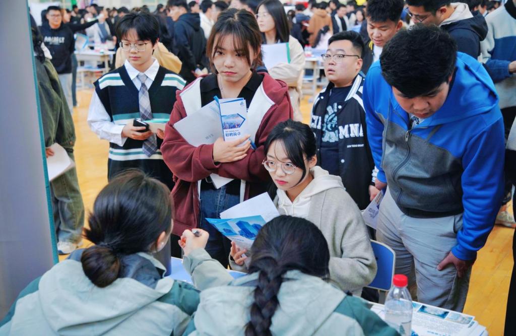 双选会现场气氛热烈,秩序井然。毕业生携带个人简历等求职材料,来往于各招聘展位之间,认真查看招聘信息,挑选自己心仪的工作岗位,积极主动与用人单位交流,了解用人单位岗位需求、福利待遇及职业发展等情况。据统计,本次双选会期间共计参会毕业生1800余人,初步达成签约意向200余人。
