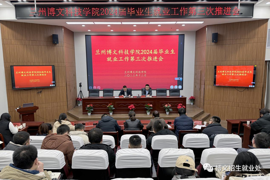 会议于2023年12月26日上午顺利召开,根据会议要求,学校在北校区综合教学楼十二楼报告厅设立分会场。学校校长陈彪、校党委书记阳红、副校长郭宝军、招生就业处处长赵存良、各二级学院院长、学院主管学生副院长、就业工作辅导员、毕业班班主任及招生就业处全体工作人员参加会议。