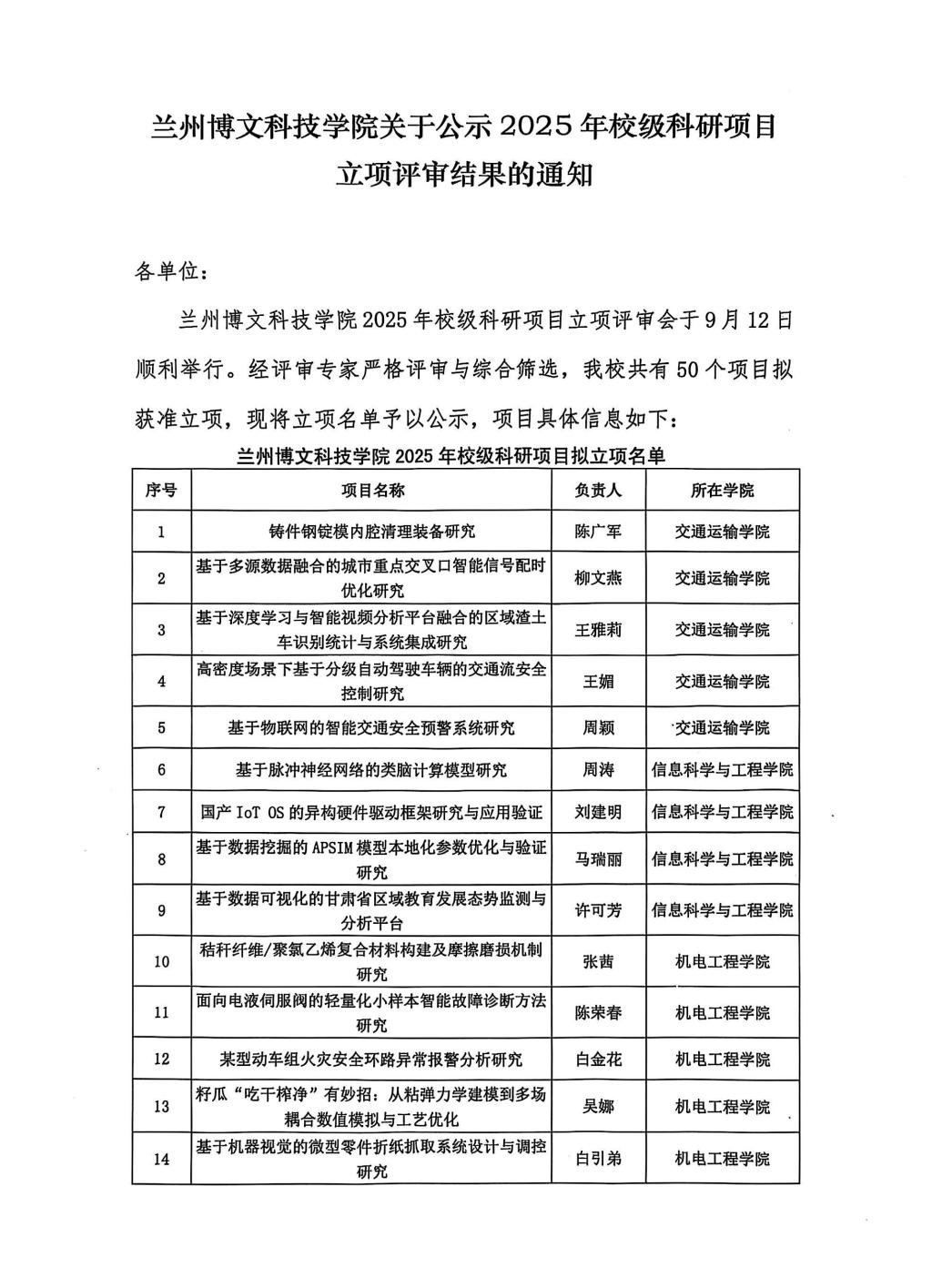 bat365正版唯一官网关于公示2025年校级科研项目立项评审结果的通知
