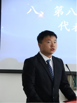 第八届学生管理委员会代表李翔做就职报告,将会在大学生科技创新中心蓬勃发展的基础上,带领第八届学生管理委员会传承并发扬大学生科技创新的优良工作作风,认真工作,做好领头人。