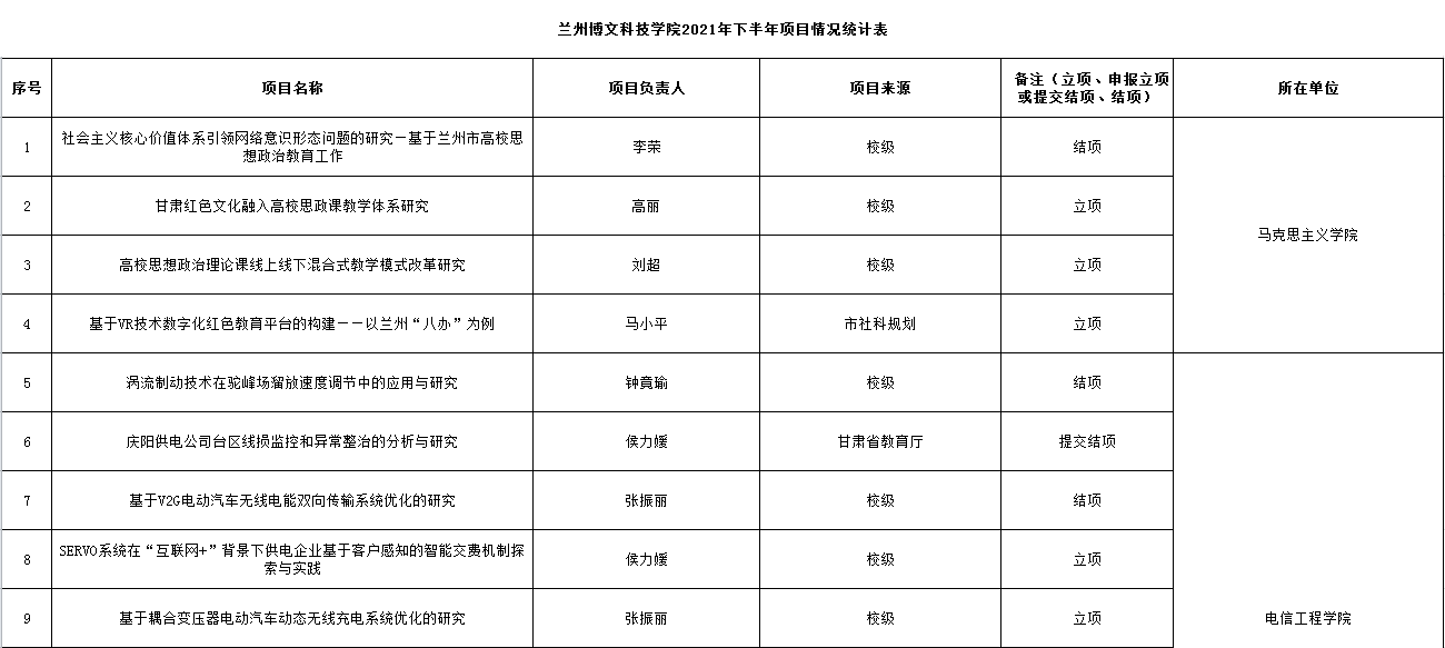 bat365正版唯一官网2021年下半年项目情况统计表