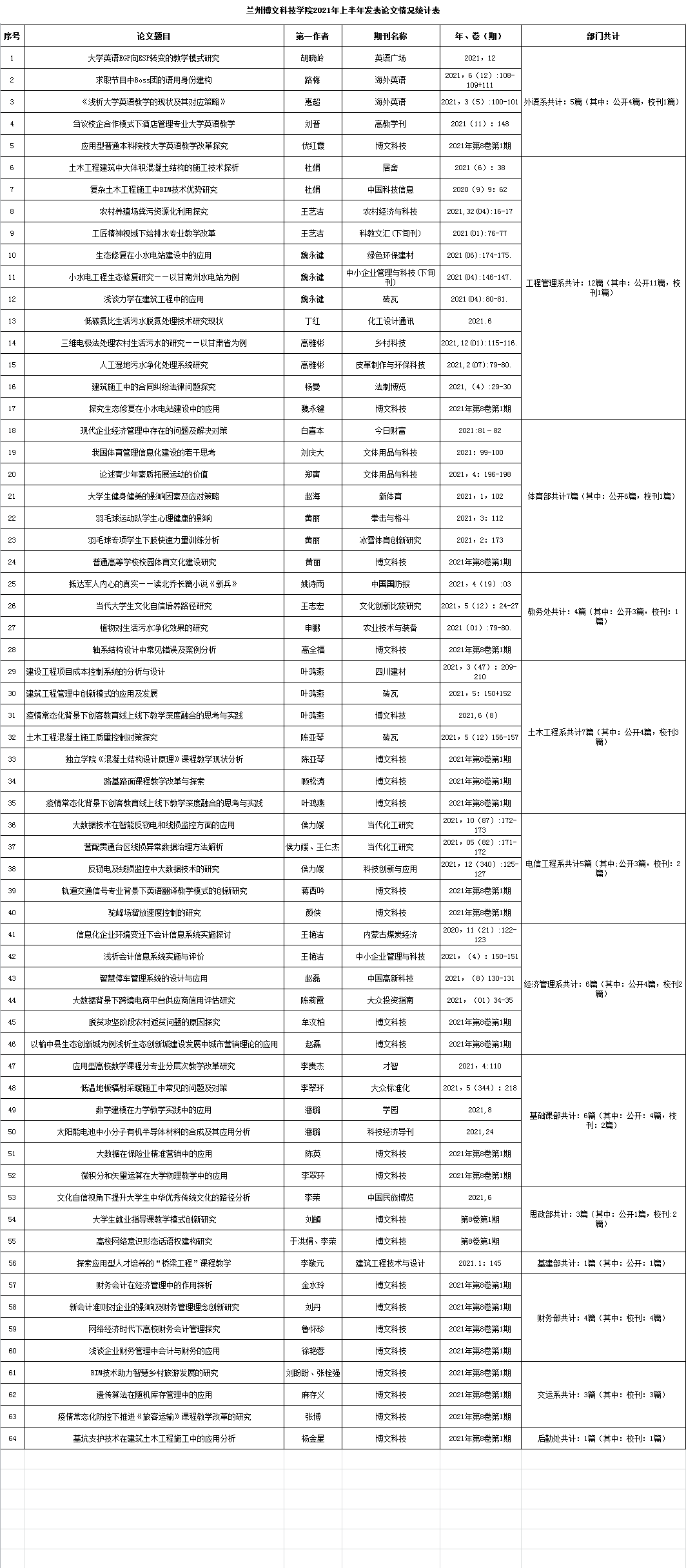 bat365正版唯一官网2021年上半年发表论文情况统计表