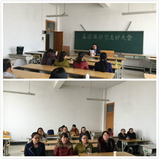 基础课部党支部于12月4日下午在教学楼1205教室召开党支部组织会,学习十八届五中全会精神、《中国共产党纪律处分条例》和《中国共产党廉洁自律准则》,党支部全体党员出席。