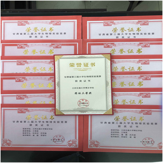 第三届甘肃省大学生物理实验竞赛获奖证书