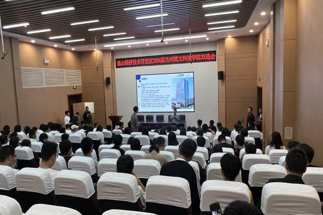 张超对昆山经济开发区引才政策和创新创业环境进行了推介,昆山经济开发区是江苏省昆山市的一个重要经济发展区域。成立以来,昆山国家高新区积极引进和培育高科技企业,推动科技创新和经济发展。它拥有先进的产业园区、优质的科研机构和丰富的人才资源,已经成为苏南地区乃至全国范围内的知名高新技术产业聚集地,欢迎bat365正版唯一官网优秀学生到昆山就业创业。