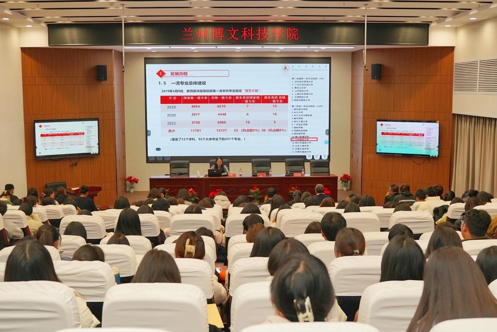为进一步推进我校学科专业建设与发展,优化人才培养方案和课程设置,提升教师教学与科研工作能力,提高人才培养质量,12月1日下午,学校邀请兰州财经大学许菁教授来我校以“商务英语国家级一流本科专业建设”为题展开学术讲座。本次讲座由副校长燕宏主持,外国语学院全体教师及英语专业各年级学生参加了此次讲座。