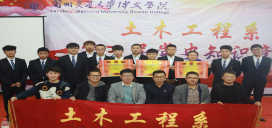 为了丰富广大同学们的精神文化,加强校园文化建设,提高同学们对党史知识的了解,激发同学们对我党党史的兴趣,兰州交通大学博文学院土木工程系于2020年11月18日在综合教学楼12楼举办土木工程系第三届党史知识竞赛。参加本次活动的领导有土木工程系教学管理副主任叶国仁、土木工程系党总支副书记巩岩、土木工程系学生第三党支部书记杨生浩,教工党员代表和我院各学生组织代表。