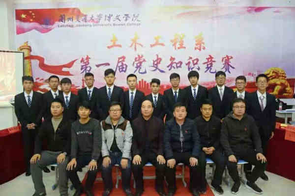为进一步贯彻落实十九大精神,坚定信念永远跟党走。兰州交通大学博文学院土木工程系党总支于2018年11月5日晚在北校区教学楼大礼堂成功举办了以“回顾历史 感激党恩 精诚合作 奋勇拼搏”为主题的党史知识竞赛活动。莅临本次活动的嘉宾有学生处处长刘炳田,党委办公室主任王凯,机关第一党支部书记张天长,校产主任杨亚强,土木系党总支副书记王俊鹏,学生第四党支部杨生浩老师,第三党支部顾松涛老师以及参赛各班级队伍与我系全体党员。