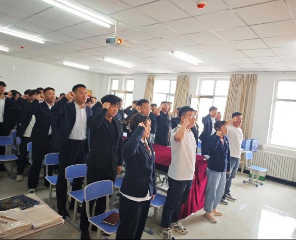 初心如磐,使命在肩;铮铮誓言,矢志不渝。全体党员面向党旗,高举右拳,以坚定的目光和饱满的热情,庄严许下对党的忠诚宣誓,铿锵有力的誓言在室内久久回荡。