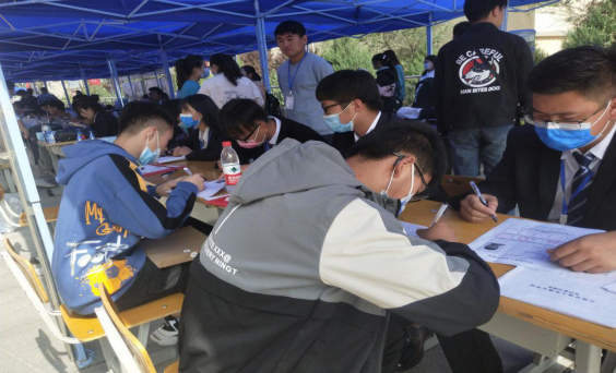 新生报到注册在图书馆内,接待及信息登记于体育馆前进行,为了新生顺利完成报到注册,沿途都放置了报到指示牌,报到登记、收费、绿色通道、物品发放等处,工作有序开展;每个环节均有志愿者热情引导,悉心服务,为新生及家长提供引导及答疑服务。我系还根据本系风采在接待点放置了图文并茂的专业介绍展板。