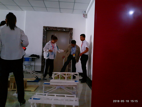2018年5月18日下午15:00,土木工程系在综合教学楼三楼举行土木工程系第九届桥梁、轨道模型与制作大赛作品评分活动。兰州交通大学博文学院教学副院长胡彦奎、教务处处长王芬琴、土木工程系主任黄钰峰、教学管理副主任李敬元、学生管理副主任王俊鹏以及土木工程系全体教师出席评分活动。