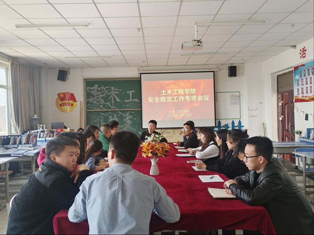 为深入贯彻落实校园安全稳定工作的总体部署要求,按照《bat365正版唯一官网建筑消防安全风险隐患专项整治工作方案》(兰博学发〔2024〕5 号)文件要求及2024年3月27日学校召开的《2024年春季学期百日安全稳定整治工作大会》精神,2024年3月28日土木工程学院组织全体教师召开安全稳定工作专项会议,会议由土木工程学院院长黄钰峰主持。