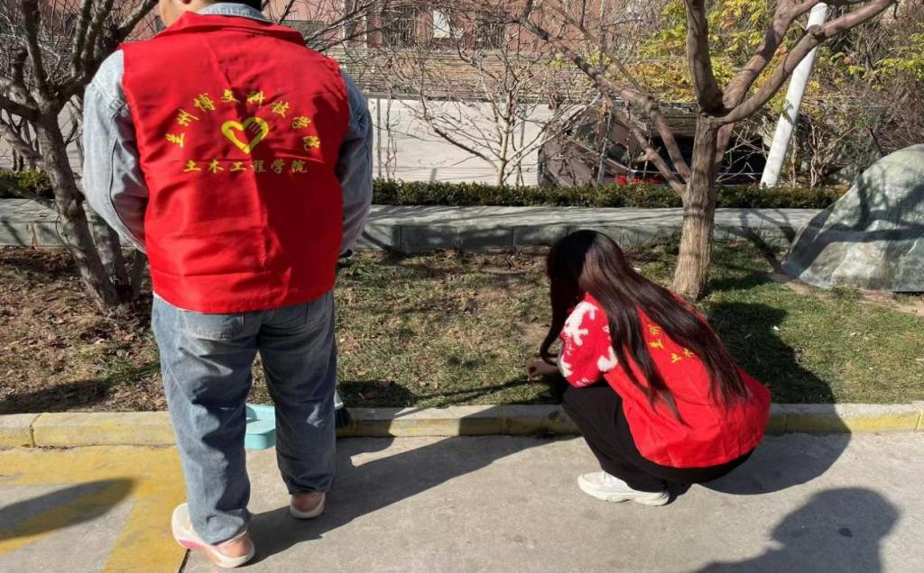 活动当天,土木工程学院团学会全体学生热情高涨,手持扫帚、簸箕、垃圾袋等清洁工具,分组对社区内的街道、花坛等公共区域进行了全面细致的清理。他们认真清扫路面垃圾,铲除角落里堆积的杂物,不放过任何一处卫生死角。在清理花坛时,学生们小心翼翼地呵护着花草,将隐藏在花丛中的烟头、纸屑等垃圾一一捡起,让花坛恢复了整洁美观。