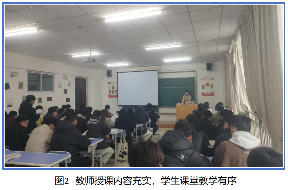 会上,教师围绕课堂纪律、学生出勤和提升教学效果等问题进行了交流汇报,对开学初教师的教学计划的执行情况、教案、讲稿、教室日志等教学各环节的教学资料以及教学场所设备设施运行等情况进行了互查和交流。结果显示,任课教师均能严格按照教学计划开展工作,教学资料完备;学生到课率良好,课堂气氛活跃。