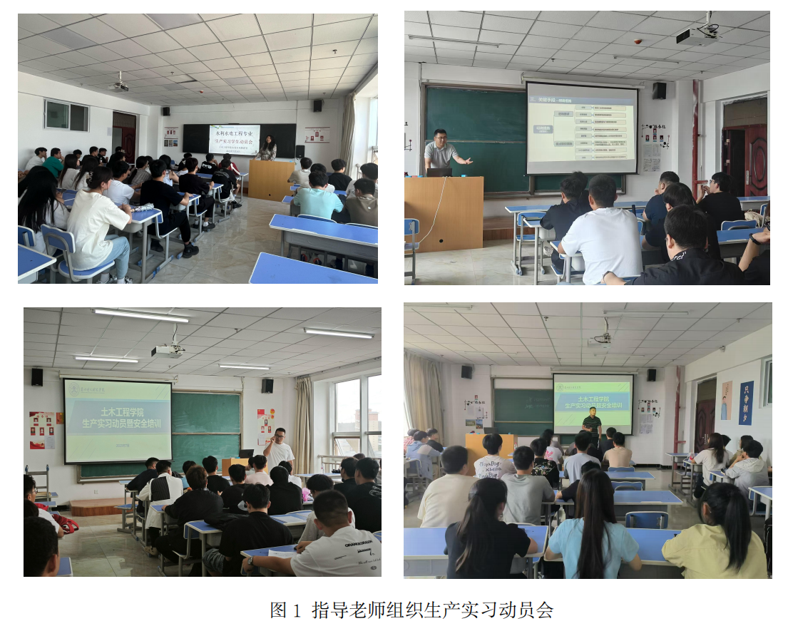 生产实习是我院土木工程、道路桥梁与渡河工程、水利水电工程、给排水科学与工程、建筑环境与能源应用工程四个专业的重要实践环节,需学生深入在建、运行项目或相关企业进行工程实践学习。通过该环节,学生将身临生产现场,真实感受生产过程,将课堂理论知识与工程实践深度融合,深刻认识职业性质和责任,提升实操技能与问题解决能力。为了保证本次生产实习顺利进行,根据我院工作安排,7 月 3 日、4 日两天,负责本次生产实习的指导老师按班级组织学生召开了生产实习动员暨安全培训会。