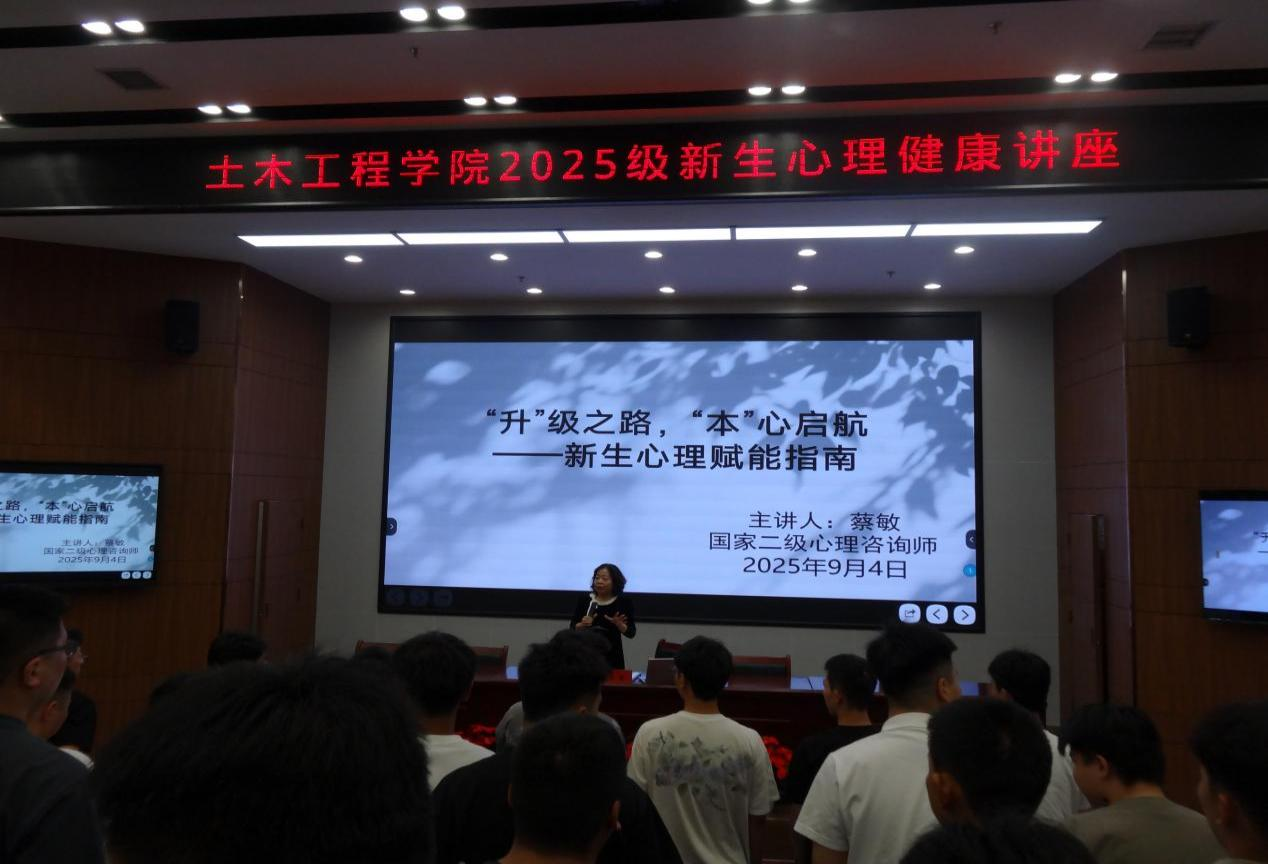 为助力2025级新生更好地融入校园、缓解因学业与身份转变带来的心理压力,2025年9月4日土木工程学院组织全体2025级专升本新生开展心理健康讲座。本次讲座邀请我校心理咨询中心教师蔡敏(国家二级心理咨询师)主讲。