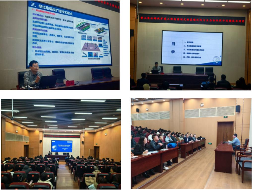 针对上述难题,刘平教授详细介绍了其团队研发的一系列关键技术:在路基稳定性提升方面,提出了基于黄土改良的复合地基处理技术、高填坝式路基分层填筑与压实控制工艺,通过室内试验与现场监测数据,验证了技术方案在控制路基沉降、增强抗滑性能中的显著效果;在生态韧性提升方面,创新性地提出了 “工程防护+生态修复”一体化技术体系,整合了植被选型、土壤改良、边坡防护等关键环节,实现了路基工程安全与区域生态保护的协同发展。讲座过程中,刘平教授还分享了多个黄土区公路改扩建工程的典型案例,通过具体工程数据与实践效果对比,让在场师生直观感受了相关技术的应用价值与推广前景。最后,刘平教授从大学生活及学习目的出发,结合生动的案例,引导学生成为有价值的人。