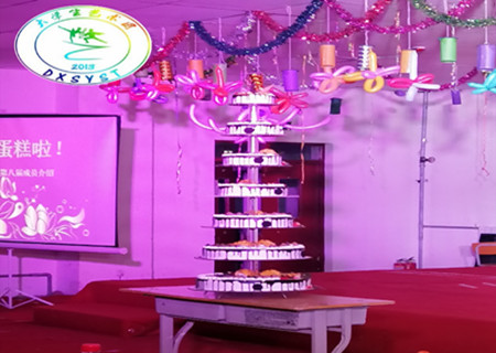 生日会开始前,大学生艺术团团长以及大二负责人迎接老师以及各大组织负责人,并且为他们提供茶水以及水果。五颜六色的气球衬托出温馨浪漫的气氛并且邀请院礼仪队一起见证这美好的时刻,伴随着音乐和掌声的响起,老师以及各大组织负责人来到现场。