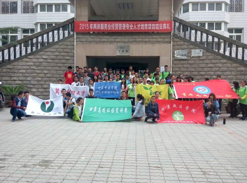 2015年9月26日早晨9点30,甘肃政法学院环境节能协会、兰州大学绿队、西北师范大学环境保护协会、甘肃中医学院环境资源保护协会、兰州工业学院环境保护协会、兰州财经大学的小绿窝资源环境协会、和青年志愿者协会、兰州资源环境职业技术学院和兰州交通大学绿色环保志愿者协会的28名绿精灵于兰州大学医学院参加了“高校环保社团交流暨素质拓展与能力培训”活动。