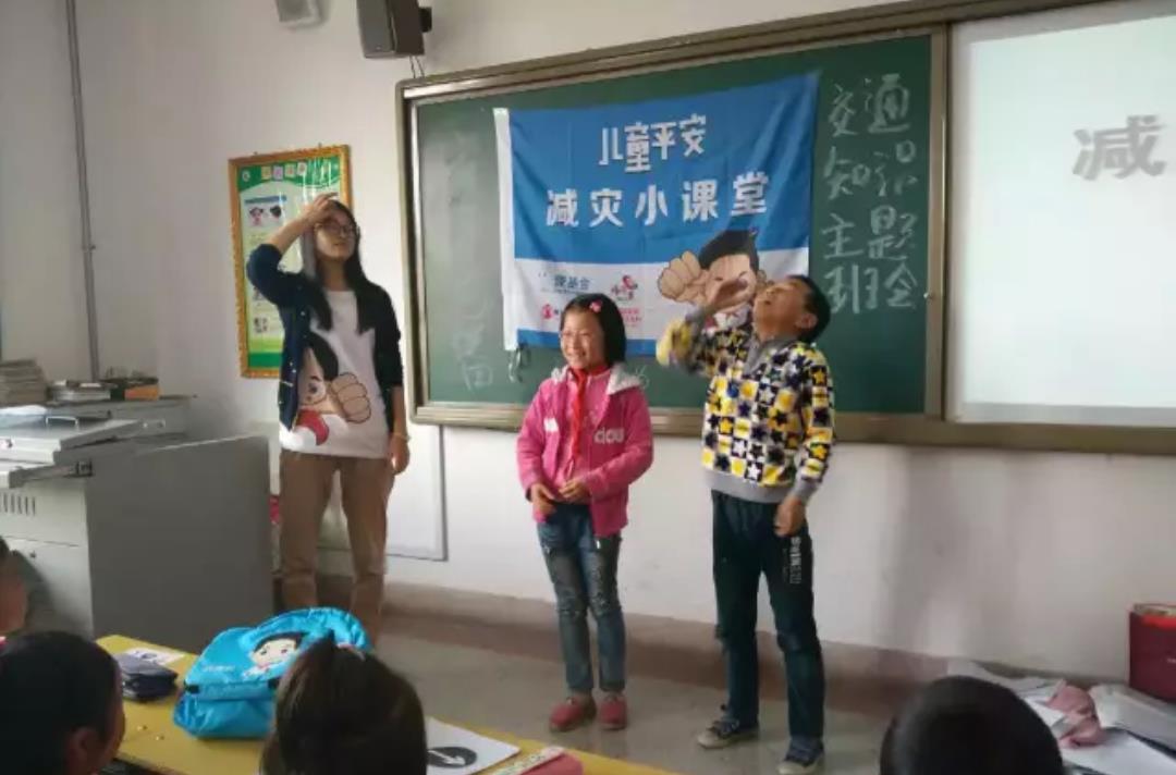在文成小学六七班和四五班举办减灾小课堂主题班会:1、交通安全最重要,所有标识我知道!志愿者和老师一起设计了很多交通标识图片让小学生们来识别,达到提高防灾减灾意识!2、应急包里有什么?你来比划我来猜!这个减灾小游戏是让孩子们用手势比划出应急包里要准备的生活必备品,而对方则要快速说出比划的是什么物品。