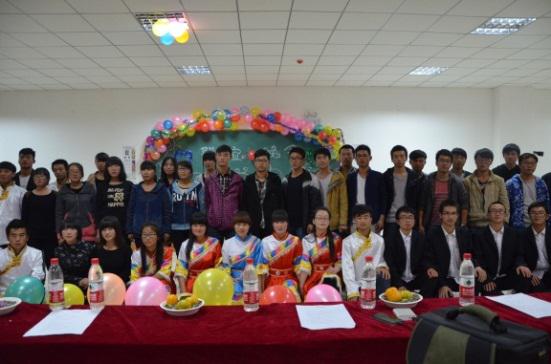 “格桑花”锅庄舞协会与计算机辅助设计协会于2014年10月24日晚上7:00在体育馆208教室举办了大一新生联谊晚会。本次活动以“凝聚社团智慧,展现会员风采,促进协会交流,打造精英团队”为主题,为同学们提供了一个展现自我的平台,各协会的节目都独具特色,尤其是我们协会的歌伴舞《踏歌而来缘定》给大家带来了一场视觉与听觉上的享受盛宴。