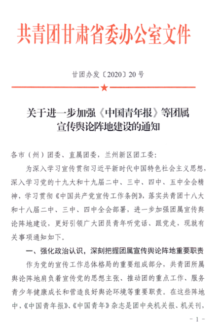 关于进一步加强《中国青年报》等团属宣传舆论阵地建设的通知