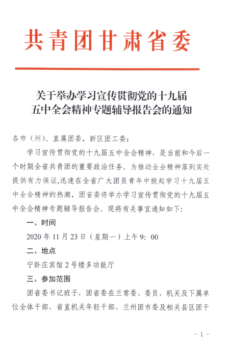 关于举办学习宣传贯彻党的十九届五中全会精神专题辅导报告会的通知