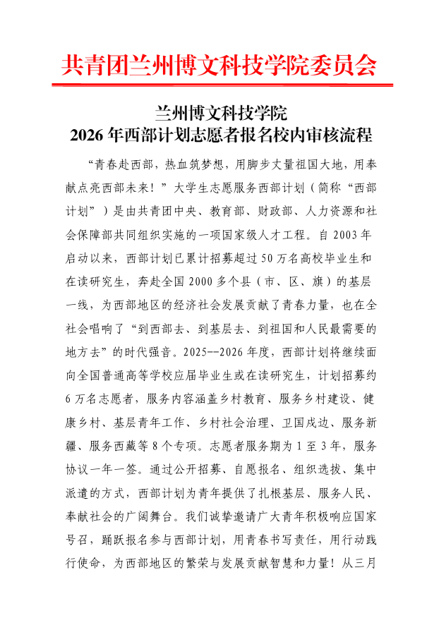 bat365正版唯一官网2026年西部计划志愿者报名校内审核流程