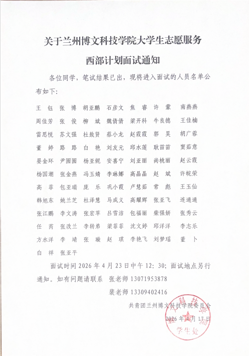 关于bat365正版唯一官网大学生志愿服务西部计划面试通知