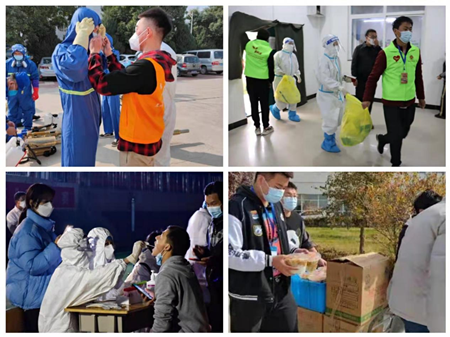 疫情期间,各班按照学院疫情防控要求,扎实有序开展体温测量、信息登记、消毒消杀、开窗通风等工作。校团第一时间组织动员组织动员全院团员青年学生有序参与疫情防控工作,组成成立15支学院志愿者服务队和校八一学社消杀服务队共计450人,在各个公寓门口、校园餐厅、超市、等公共场所以固定服务和流动劝导的方式提醒师生佩戴口、保持距离、排队就餐、不聚集、少外出,在校园出入口设立疫情防控志愿监督岗,协助学院做好疫情防控管理工作,协助后勤服务人员进行校园消杀等工作。