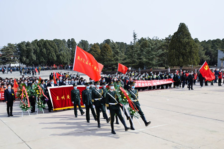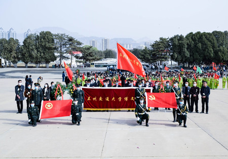 为庆祝中国共产党成立100周年,深入学习贯彻新时代中国特色社会主义思想和党的十九大精神,深切缅怀革命先烈的丰功伟绩,祭奠烈士的英灵,寄托我们的哀思,表达我们继承革命遗志的坚定信念,从根本上净化心灵之窗、熔炼至纯至真的党性、激扬向上向善的精气神,为戮力同心谱写公益微马新篇章注入强大正能量, 3月27日,bat365正版唯一官网校团委队组织50多师生在学生处刘炳田处长、刘秀星副处长、校团委王俊鹏书记的带领下来到兰州市华林山烈士林园缅怀革命先烈,接受红色革命教育精神熏陶,开展缅怀“卫国戍边英雄”陈红军烈士纪念活动。