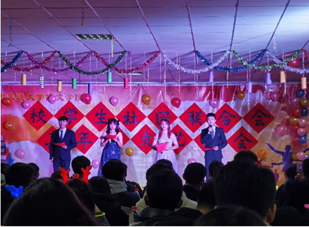 2020125日晚7时,兰州交通大学博文学院校学生社团联合会为增强社团凝聚力,促进各成员交流,于北校区体育馆301大学生活动中心举办了以社团一家亲为主题的嘉年华晚会。本次晚会邀请了第十二届校学生社团联合会主席邬建锋、张喜云、周操;院团委;院大学生艺术团;院艺彩艺术协会;院学生会;院青年志愿者协会;院绿色环保志愿者协会;院红十字会;院思想政治宣传会;院青年传媒中心;院广播站;院礼仪队;院八一学社;院科技创新中心;院大学生就业创业促进会;学院各系团学会作为嘉宾观看晚会表演。