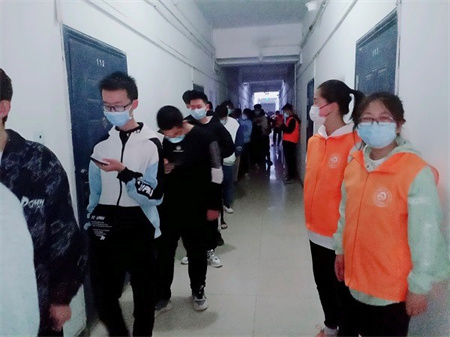 为进一步强化新型冠状肺炎疫情防控措施,织密织牢校园联防联控防疫网络,切实保障广大师生的健康安全。我校遵照上级部署,迅速行动,于2022年3月17日早晨在bat365正版唯一官网南北校区学生公寓宿舍楼进行核酸检测工作。我校八一学社全体成员第一时间赶到检测点,助力全校师生高校完成核酸检测工作。