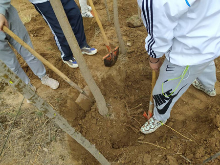 春风吹拂,大地处处生机蓬勃。植树现场大家干劲十足,挥锹铲土,扶树培苗,大家以实际行动履行全民植树义务。师生们认真学习关于植树的细节知识,彼此合作完成树苗的栽种,体会到照顾树苗的不易、亲自栽种树苗的快乐以及团队合作的重要性,植树现场每个人都热情高涨,看着大家对绿色的那份痴情,着实令人感动。