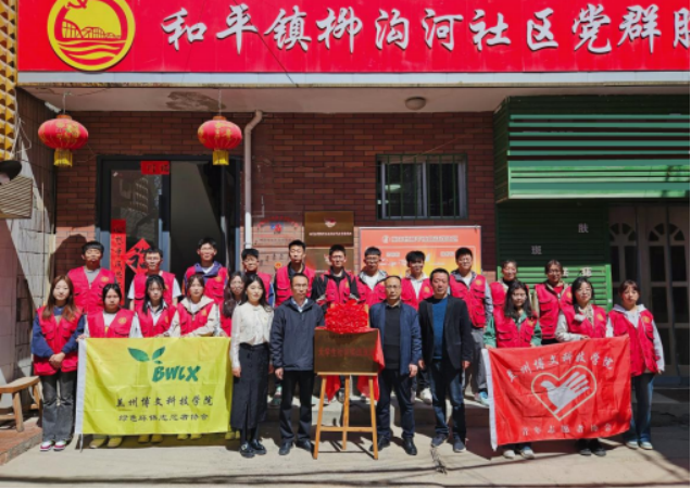 为深⼊学习贯彻习近平总书记关于⻘年⼯作的讲话精神,落实团省委关于推进⼤学⽣社区实践计划的要求。4⽉11⽇下午 ,兰州博 ⽂科技学院与柳沟河社区居⺠委员会⼤学⽣社区实践基地挂牌仪式 在柳沟河居委会举⾏ 。兰州博⽂科技学院副校⻓刘德光、兰州博⽂科 技学院学⽣处处⻓刘秀星、榆中县和平镇柳沟河社区书记魏洁虎、兰州博⽂科技学院校团委书记强晶晶出席挂牌仪式。