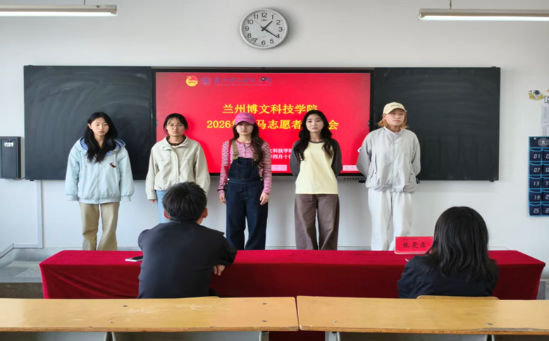 为积极响应共青团兰州市委号召,全力护航2026兰州国际马拉松赛事,4月14日,我校2026兰州马拉松志愿者选拔在南校区教学楼东T2教室顺利开展。本次选拔旨在从报名学生中择优遴选,组建一支高素质、专业化的志愿服务队伍,为即将到来的“兰马”赛事贡献博文青春力量。